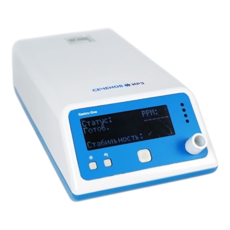 Анализатор водорода Gastro One позволяет определять концентрацию водорода в выдыхаемом человеком воздухе и применять полученные данные для диагностики таких нарушений со стороны желудочно-кишечного тракта (ЖКТ), как синдром избыточного бактериального роста (СИБР) и нарушение всасывания углеводов.
