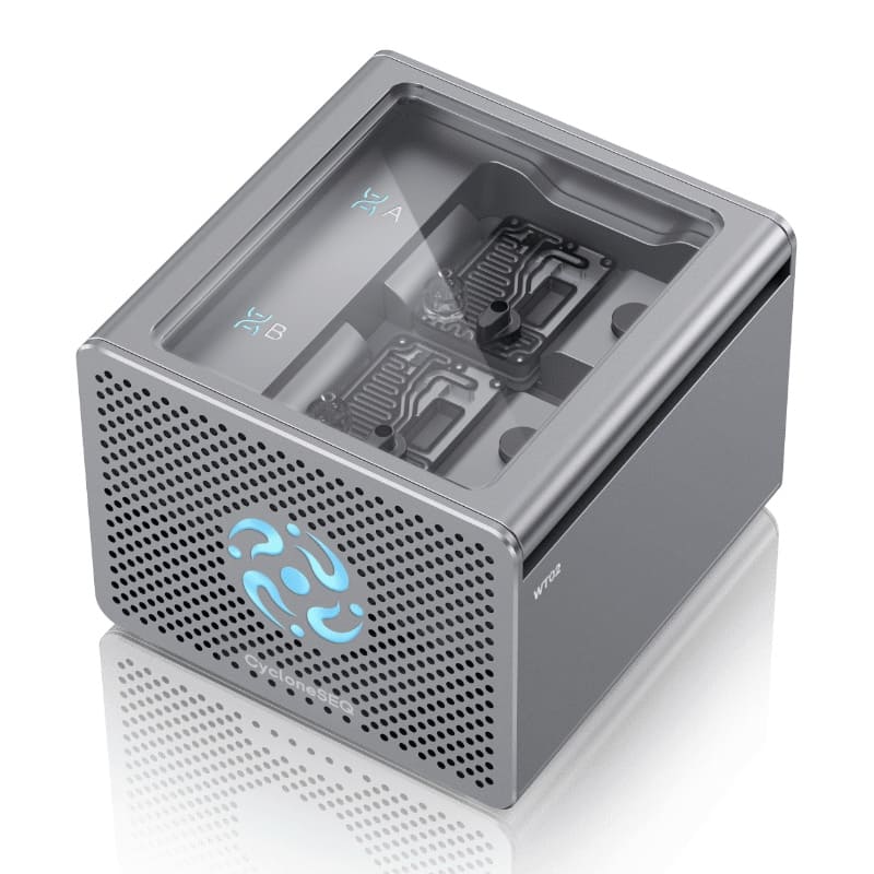 CycloneSEQ G100-ER — это нанопоровый генетический секвенатор с двумя независимыми проточными ячейками.